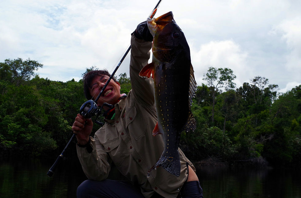 また、軽快な使用感からは想像もつかないリフトパワーも特筆すべき点です。強烈なファイトを見せるトーマン類の魚でさえロッドの復元力のみでオートマチックに魚を浮かせることが出来ます。バットがきっちり残るのが特徴で、強烈な引きに対してもバットが必要以上に追従せず耐えることが出来るので無駄に魚を走らせません。バットから曲がる竿はストライクの瞬間走る魚に対して、ブッシュに逃げ込めるだけのダッシュを許してしまうので、貴重な魚を逃してしまう要因になります。かつて悔しい思いを経験してきたからこそ、この部分は譲れませんでした。